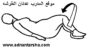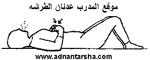 1- الرقود في وضع الاستعداد. 2- خفض الرجلين للجهة اليمنى لغاية لمس الأرض مع تحريك الرأس بالعكس للجهة اليسرى. 3- العودة إلى وضع الاستعداد.