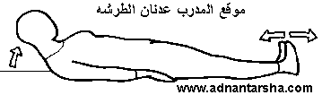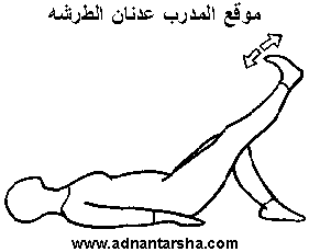 1- الرقود في وضع الاستعداد. 2- مد الرجل اليمنى للأمام. 3- رفع الرجل عالياً ببطء مع تحريك القدم للأمام والخلف باستمرار.