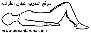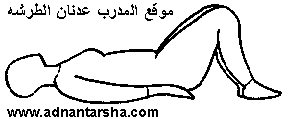 1- الرقود في وضع الاستعداد. 2- رفع الحوض للأعلى. 3- العودة لوضع الاستعداد. التكرار 8 مرات.
