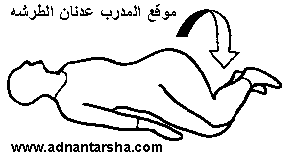 ضغط البطن باليدين 1- الرقود على الظهر مع ثني الرجلين ووضع اليدين على البطن وأخذ شهيق.