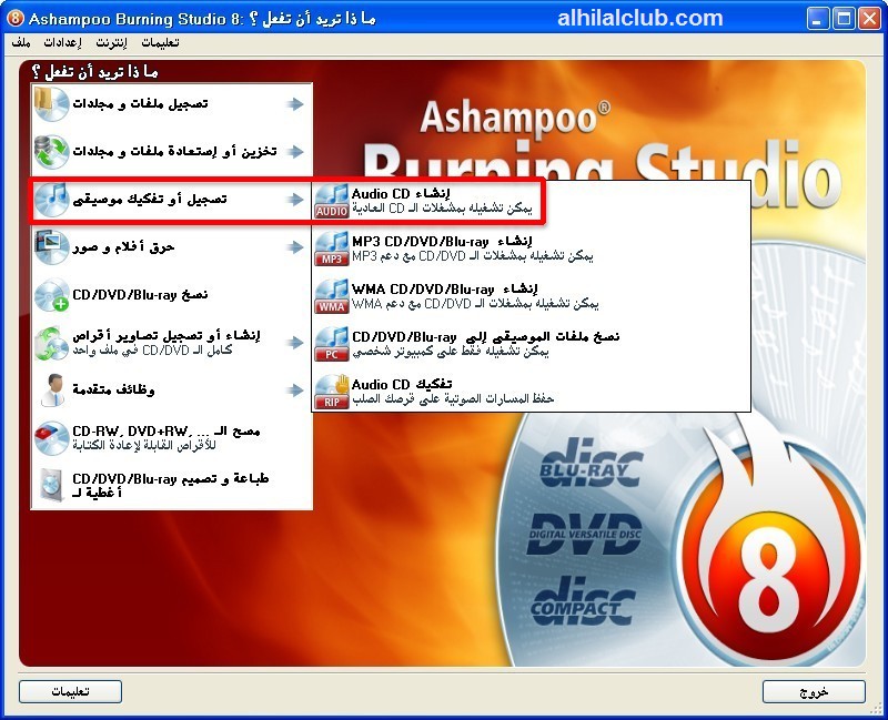 برنامج Ashampoo Burning Studio هو برنامج تفوق على كل برامج النسخ الشهيرة وهو المنافس الاول برنامج Nero والبرنامج خفيف على الجهااز ويدعم كذلك اللغة العربية..ويشمل كل مايتعلق بالنسخ..وكذلك يمكنك الرسم على القرص..!!