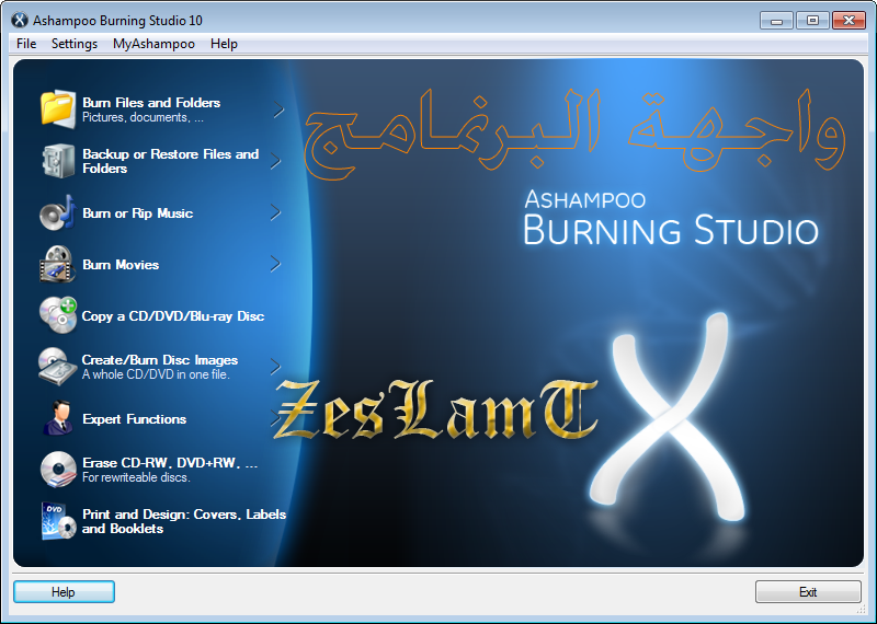 برنامج Ashampoo Burning افضل من نيرو وعالم نيرو اتجه الى افضل نحو هذا برنامج Ashampoo Burning Studio 10 العملاق مدمر نيرو نسخ بياناتك بسرعة نسخ افلامك نسخ صورك نسخ احتياطية انشئ البومات انشئ صور من اقراصك انسخة ايزو و بين على اقراص بنقرة زر مميزات البرنامج حرق ملفات ومجلدات على اقراص المدمجة و DVD . حرق ملفات الصوتية على اقراص مدمجة WAV, MP3, FLAC, WMA . حرق MP3 على اقراص مدمجة .حرق ملفات فيديو على اقراص مدمجة و DVD . سرعة حرق وخيارات أخرى يمكن أن كلّ يكونا مجموعة آليا.نسخ صنع من التسجيل الصوتي، أقراص البيانات أو الفيديو بسهولة.مساعد حلّ المشاكل التفاعلي لحلّ الأجهزة والمشاكل الإعلامية.إحفظ ملفات المشروع لكي أنت يمكن أن تحرق نفس الأقراص ثانية لاحق. برنامج يمتلك الكثير من خيارات والأهم من ذالك واجهة البرنامج عربي قام بتعريبها الأستاذ عوض الغامدي .