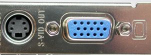 تكون هذه الفتحة مدورة الشكل ولونها أصفر, لكن في بعض كروت الشاشة تكون لون هذه الفتحة أسود. نجد بجانب هذه الفتحة كتابة TV OUT .