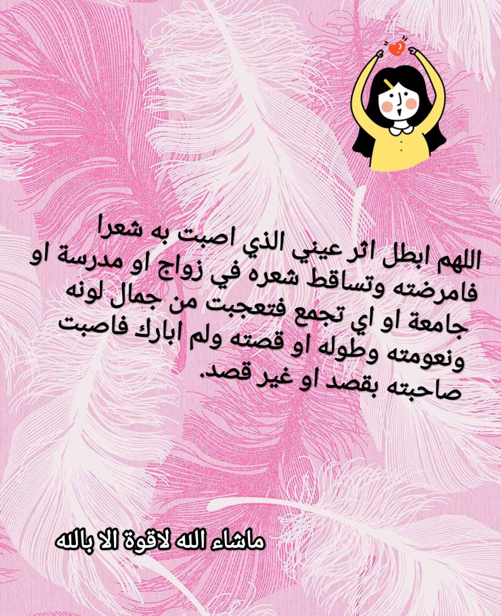 عرض القائمةhttp://www.w3.org/2000/svg" viewBox="0 0 20 20" fill="currentColor" class="w-5 h-5">اللهم اني اعوذ بك من نفسي الامارة بالسوء واعوذ بك من الشيطان ...واعوذ بك من احسد ناس لااعرفهم او اعرفهم على ماسمعت ورايت عندهم من فرح او احسدهم على ذرية او أي شيء جميل يمتلكونه ...اعوذ بك من عيني وحسدي وتمني زوال نعمة عن الغير وأنا لااعلم يارب مافي قلوبهم من ألم او فقد ..ولا أعلم ماينقصهم ومايعتريهم من شعور كل يوم اللهم ادم عليهم مارزقتهم وارزقهم من واسع فضلك وانزل عليهم وعلى ذريتهم العافية وانشر في بيوتهم السكينه واخرج حب الدنيا من قلبي..واعوذ بك من اعجابي وتعجبي مما رأيت في غيري من جمال بشرة او شعر او جسم او ذرية او تفوق او مزاج عالي وجمعة اهل وفرحة أعياد ولم شمل وحب زوج حسدتهم عليه بقصد او دون قصد واشفي يارب كل مريض لايعلم بحاله الا انت....آمين.