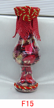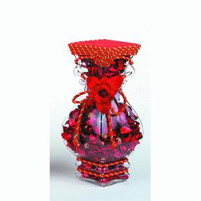 وتزينها بالورد الصناعى والاشرطة الستان من الممكن وضع قطعة من المسك الخام داخل الزجاجة