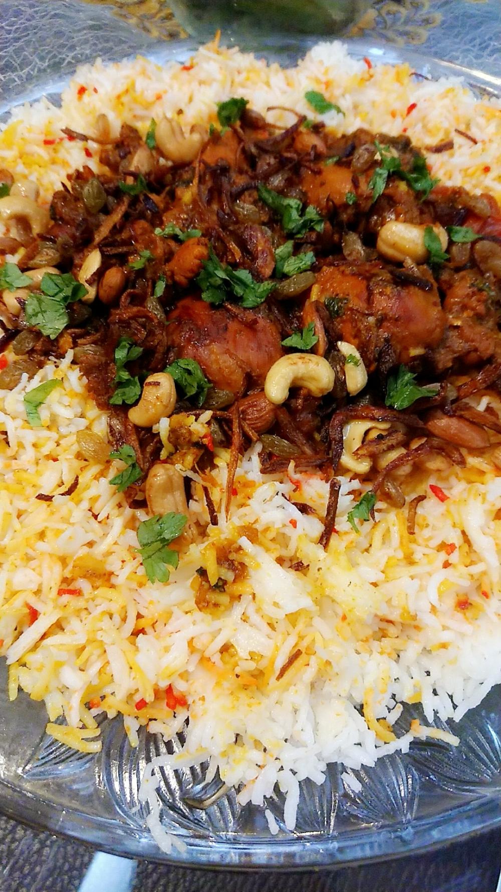 وفي الأخير احمر بصل شرائح واضيفه ع الرز مع منقوع الزعفران واغطيها لخمس دقايق والنار مقفوله وبعدين يقدم بالعافيه 🌸