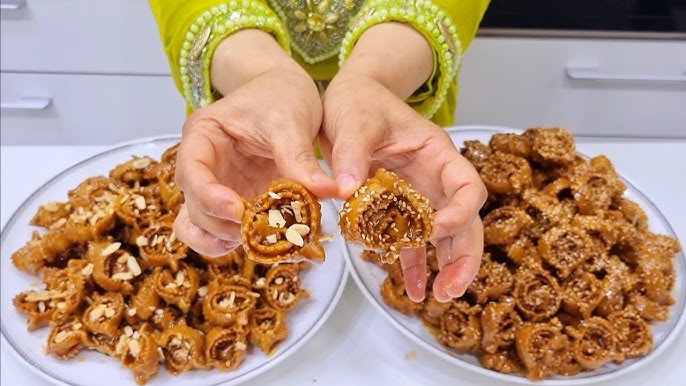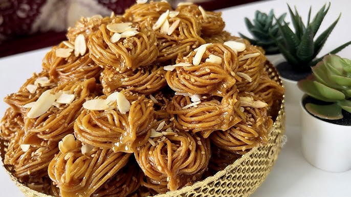 (من حلويات رمضان🌙 الشهيرة ) تكون معسلة ..تقليدية و قديمة جداً تسمى شباكية لانها تشبك بالايادي ..