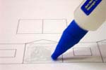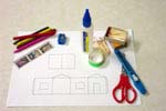 4 بعد الانتهاء من لصق الاعواد على الورق يتم قص البيت والسقف بالمقص او المشرط
