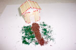 7 يتم تثبيت البيت ورسم طريق باللاصق ثم رش مسحوق البرى عليه ليثبت