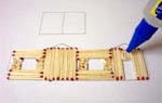 3 ترص اعواد الكبريت متعاكسه واحده للاعلى والاخرى لاسفل وتسوى بالمسطره لتكون على استقامه واحده