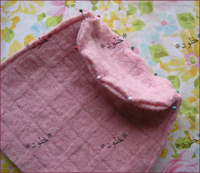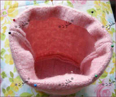و نطوي اطراف الشنطة ونضع الدبابيس لتثبيت اليد و لعمل سحاب غلق الشنطة..