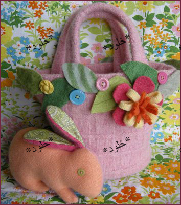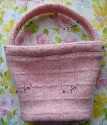 وهذه الشنطة هنا بعد خياطتها كاملة وتثبيت اليد وباقي عمل الزينة ..