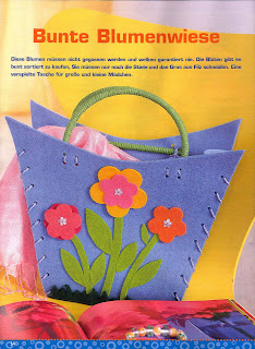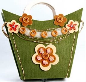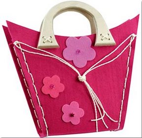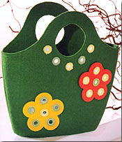 ثم نثبت الورود على الأوراق ونزينها بالأزرار الملونة وتثبت بالابرة لتحصلي على شنطة رائعة وزاهية الألوان ...