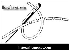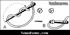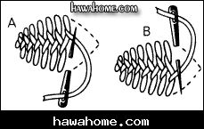 يدخل الخيط في النسيج ونخرجها من أسفل الجهة اليسار إلى الأعلى كما في الصورة من نقطة a إلى b