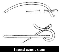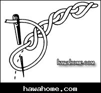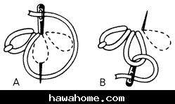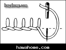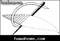 تغرز الإبرة فيظهر القماش ثم يثبت الخيط بغرزة التثبيت لإنهاء العمل