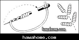 يدخل الخيط في النسيج ويمسك بابهام اليد اليسرى كما في الصورة نقطة a ثم يدخل في b وحسب الطول المرغوب أو مسافة الغرزة المقررة يترك الخيط طليقا ثم ندخل الإبرة في النسيج نقطة d ويكون الخيط تحت نقطة الإبرة ثم يسحب للغرزة التالية وتثبت الحلقة بغرزة صغيرة جدا من كل جانب.