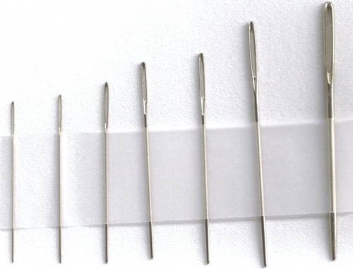 4- إبر التطريز وهي إبرة حديدية لها عدة أحجام ومقاسات حسب سمك القماش ونوعيته.