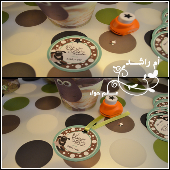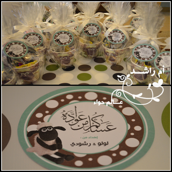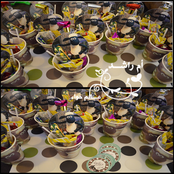 والحمد لله كان عندي أكواب للخروف شون شاريتهم من فتره كل اللي سويته جبت تشكيله من الحلويات وعبيت الكوب وزينته ع السريع ،،، طبعا هالشغل السريع اخذ مني تقريبا ساعه ونص وانا دااايخه نووووم وورانا قومة الصبااح
