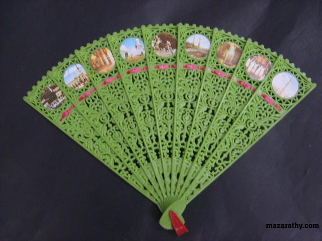 مهفة قديمة مصنوعة من البلاستيك ، وبها عدة صور قديمة جدا للحرمين الشريفين