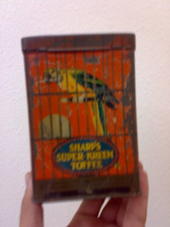 علبة حلوى توفي ومكتوب عليها بلانجليزي SHARPS SUPER-KREEM TOFEE