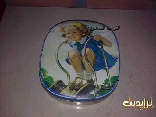 علبة حلويات انجليزية ، وموجود فوق الغطاء ختم لاصق ( إمارة القصيم ).