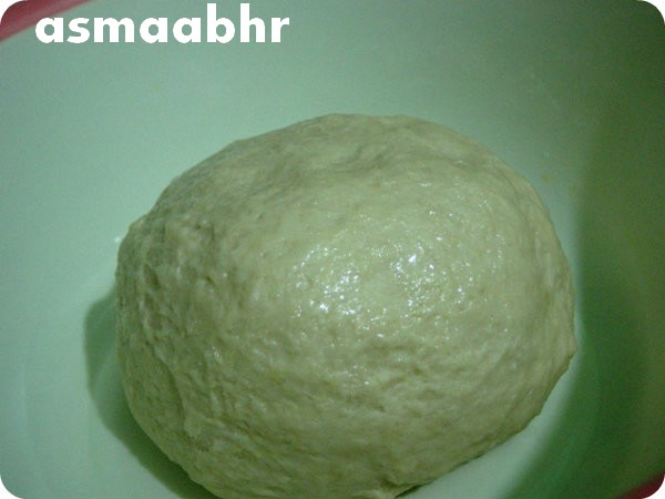 ضعي العجينة في وعاء مدهون واتركيها تختمر بين ساعة وساعة نصف