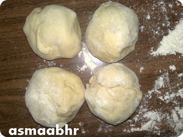 ثم اضيفي الدقيق شيئا فشيئا حتى تحصلي على عجينة طرية ومتجانسة