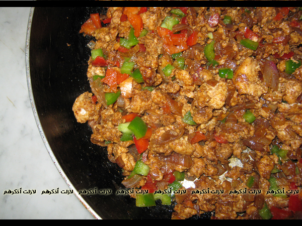 دجاج مفروم ومكشن مع بصل وفلفل بارد وصويا وثوم لو حبيتو