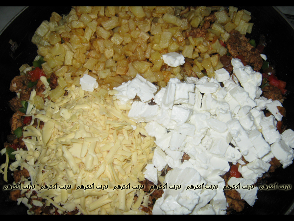 لما يبرد يبشر عليه علبة تشيدر صغيرة وجبنة مالحه تقطع مربعات صغيره (الجبنه لازم تكون بارده على ماتخرب عليك)