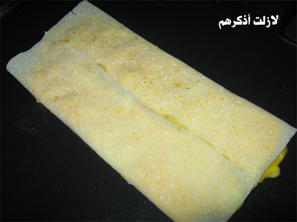 على صاجة تيفال حارة توضع الحشوة ويطوى الجنب الأيمن والأيسر بالتساوي