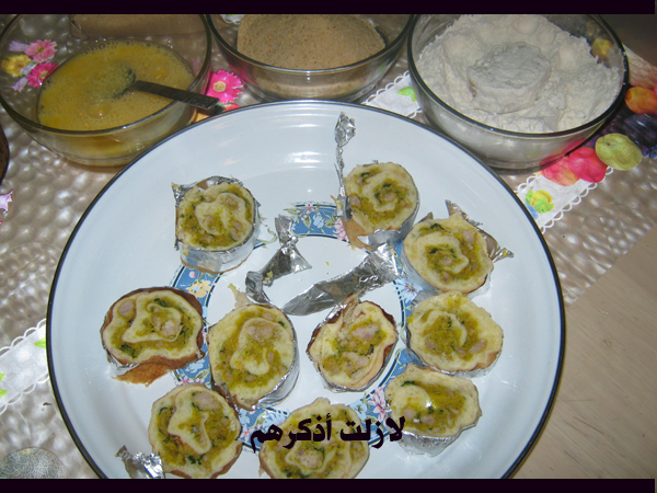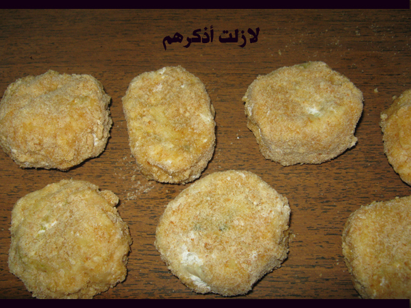 نقطعها حلقات ثم نغمسها في دقيق ثم بيض ثم بقسماط ونرجعها للفريز
