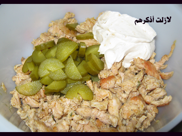 ولمايبرد حطي عليه خليط (زبادي ومايونيز وطحينة وليمون ) أو (لبنة ورانش وطحينة وليمون ) وقطعي معاه مخلل قطع صغار