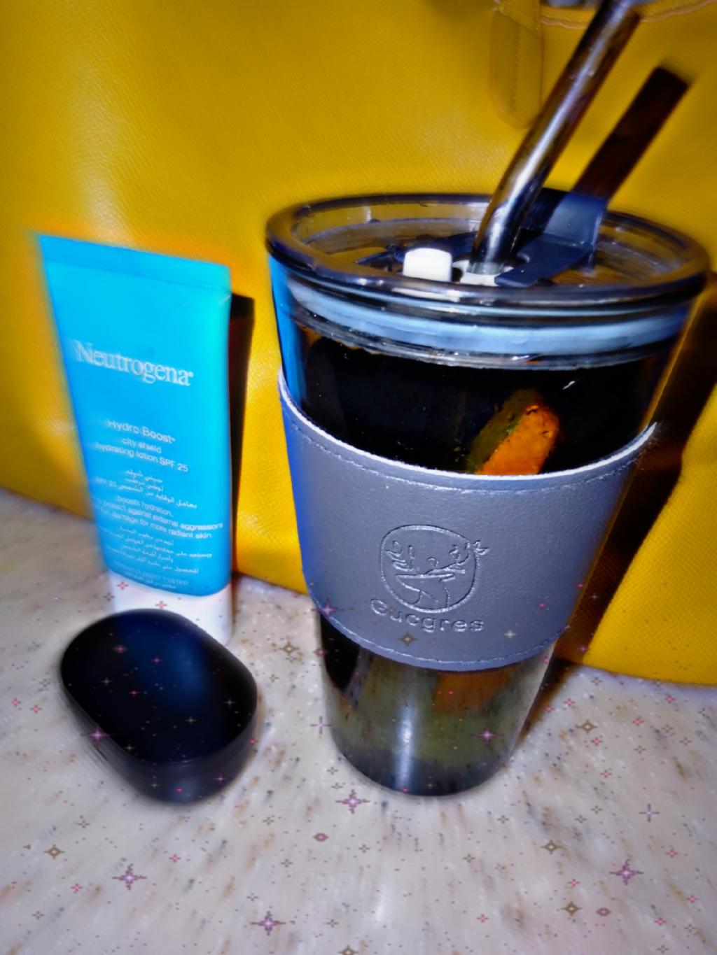 شنطتي الصغيرة غالبا ( مناديل - محفظة - سماعتي - كريم مرطب - والعطر مخصصة زجاجات التعبئة افرغ فيها عطري المفضل واخذه معي وغالبا العطر الاساسي يكون بالبيت ما احب اخذه معي )وداخل المحفظة حاطة حبيتن مسكن للطواريء وحبة الحساسية لانه عندي التهاب جيوب انفية وما اضمن الجو