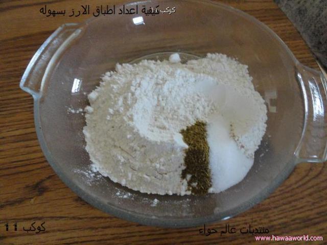 ثم يوضع في الدقيق المضاف له الكمون والملح ويحرك جيدا