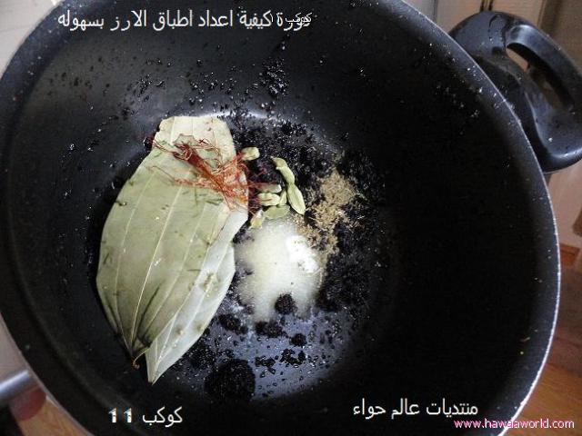 بعد الحرق اضيفي له 3 اكواب ماء وربع والتوابل اللي بين القوسين