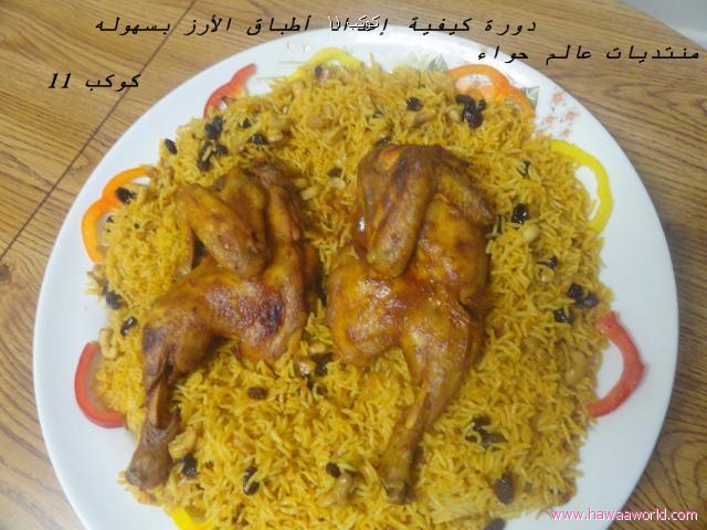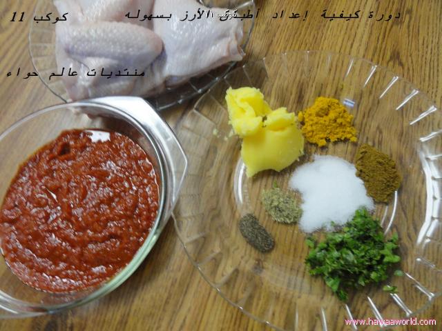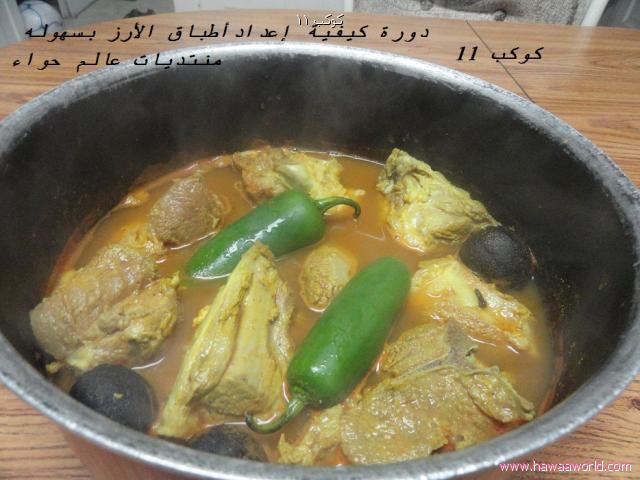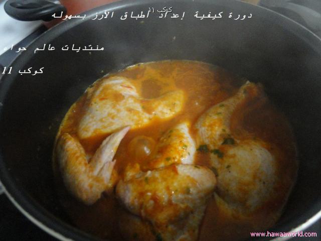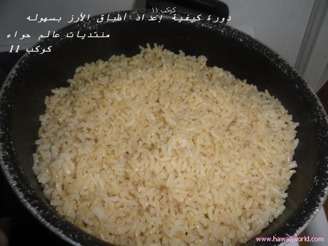 وتضعينه على الرز وتضعين الجميع على النار ولما يغلي توطين النار على طول