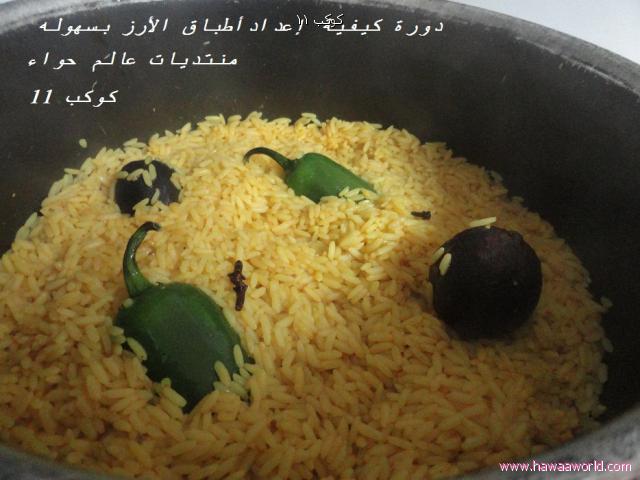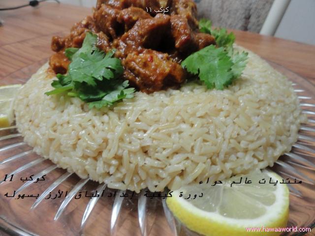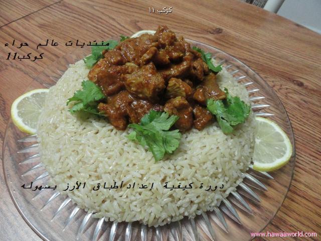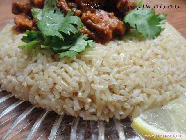 الرز طبخته بمويه وملح وشوية كمون وكاري