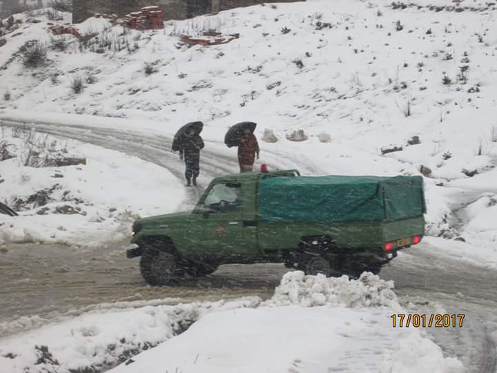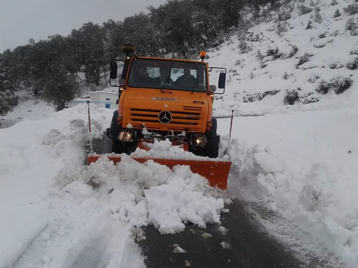 افراد الدرك الوطني والحماية المدنية يقومون بفك العزلة في الطرقات التي يستعملها الناس عادة