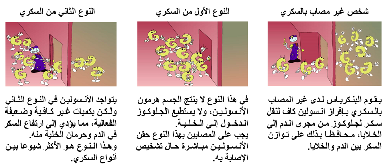 لوحة تقريبية بالصور لمرض السكري وكمية الانسولين /