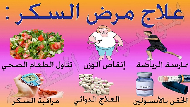 العلاج : الانسولين ، الغداء الصحي ، وهناك ايضا عدة وصفات للعلاج بالطب البديل :
