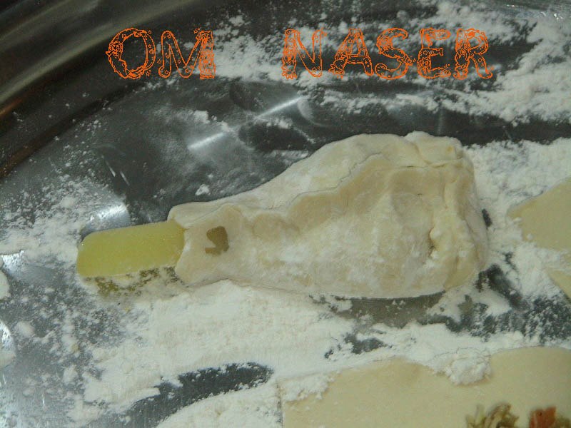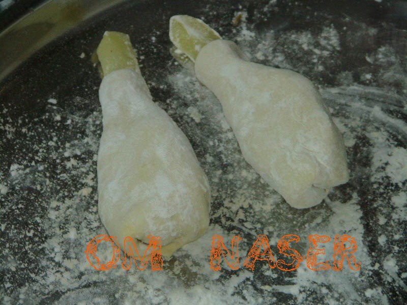 ونرد طرف اخر هكذا مع الضغط عليه لحين ما يتماسك ويجب ان يكون العجين طري