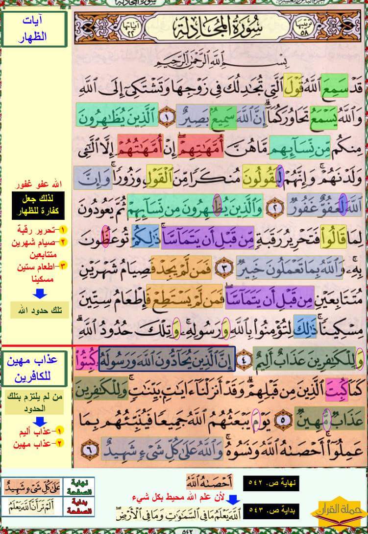 💥 أفكار مساعدة على الحفظ والتثبيت 💥 سورة المجادلة