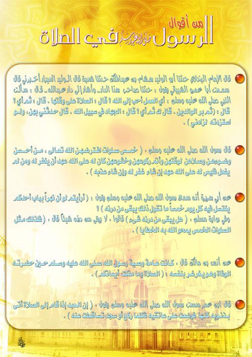 الرسائل رسالة ( شاركينى اخيتى )رسالة إلى الإداريات والمعلمات إلي من تقلدت وظيفة الرسل .............. إلي من أكرمها الله بحمل رسالة التعليم .......... إلى الصابرة في ميدان التربية............... إلى من تحمل هم الإسلام علماً وعملاً.............. أبشرك بقوله صلى الله عليه وسلم : ( إن الله وملائكته وأهل السموات والأرض حتى النملة في جحرها وحتى الحوت ليصلون على معلم الناس الخير ) إليك أيتها............................ قال تعالى: ( الذين إن مكناهم في الأرض أقاموا الصلاة واتوا الزكاة وأمروا بالمعروف ونهوا عن المنكر ولله عاقبة الأمور) انطلاقاً من هذه الآية وعملاً بها يسعدنا أن تساهمي معنا بالكلمة والنصيحة والإرشاد والإشراف لتفعيل هذا البرنامج الذي تشوقت إلية نفوسنا وهو الآن بين أيدينا والذي نرجو من الله تعالى أن نجني ثماره وأن ينفعنا به بعد الموت . جعلك الله مباركة أين ماكنت رسالة الى الوالدين (حتى يكون قرة عين لكما ) ترفق هذه الرسالة مع احد الأشرطة التالية (دموع المآذن – قرة العيون – الصلاة تشتكي) كهدية للمصلى تبعث إليهما أيها الأب وأيتها الأم الكريمان : السلام عليكم ورحمة الله وبركاته إن من تمام النعمة والمنحة أن رزقكما الله بأولاد في حين أن غيركما حُرموا منهم ، فهم زهرة الحياة الدنيا وفي صلاحهم قرة عين للوالدين ، فمن شكر هذه النعمة تربية الأولاد على أداء الركن العظيم ألا وهو الصلاة . وأنطلاقاً من قوله عليه الصلاة والسلام " كلكم راع ومسؤؤل عن رعيته : فلإمام راع ومسؤول عن رعيته ، والرجل في أهله راع وهو مسؤول عن رعيته ، والمرأة في بيت زوجها راعية وهي مسؤولة عن رعيتها ... " فإننا نذكر أرباب الأسر ممن حملوا الأمانة أن لا يخرج من تحت أيديكم غداً من لا يصلي فتأثمان بإخراجه إلى أمة الإسلام كافراً من أبوين مسلمين وذلك بالتفريط والرحمة المنكوسة . فتخافان عليه من البرد ولا توقظانه لصلاة الفجر ، وتخافان عليه من شدة الحر ولا يذهب ليصلي العصر " قل نار جهنم أشد حراً لو كانوا يفقهون". يقول ابن القيم رحمه الله : فمن أهمل تعليم ولده ما ينفعه ، وتركه سدى ، فقد أساء غاية الإساءة ، وأكثر الأولاد إنما جاء فسادهم من قبل الآباء ، وإهمالهم ، وترك تعليمهم فرائض الدين وسننه ، فأضاعوهم صغاراً ، فلم ينتفعوا بأنفسهم ، ولم ينفعوا آباءهم كباراً. أيها الوالدين الكريمان : يقول الله عز وجل : " وأمر أهلك بالصلاة واصطبر عليها" فأبشرا فأنتما في خير طريق " والذين جاهدوا فينا لنهدينهم سبلنا ". وأخيراً لا ننسى أن ندعي لأنفسنا ولأولادنا بالصلاح والهداية والتوفيق والسداد ومن دعاء الأنبياء والصالحين " رب اجعلني مقيم الصلاة ومن ذريتي ربنا وتقبل دعاء " والسلام عليكم ورحمة الله وبركاته . كيف يتم تفعيل هذه الشعارات في تلك الفترة ؟؟ يتم تفعيل شعار الأسبوع (يا بني أقم الصلاة ) من خلال : • الكتابة في لوحة خاصة توضع في مكان بارز • التذكير بالشعار في الإذاعة الصباحية • كتابة الشعار في بطاقات صغيرة – أن أمكن – وتعليقها على صدور الطالبات ويحق لكل فصل أختيار شعار من الشعارات المدرجة يتم تنسيقه وتعليقه من قبل الطالبات على باب الفصلالرسائل رسالة ( شاركينى اخيتى )رسالة إلى الإداريات والمعلمات إلي من تقلدت وظيفة الرسل...