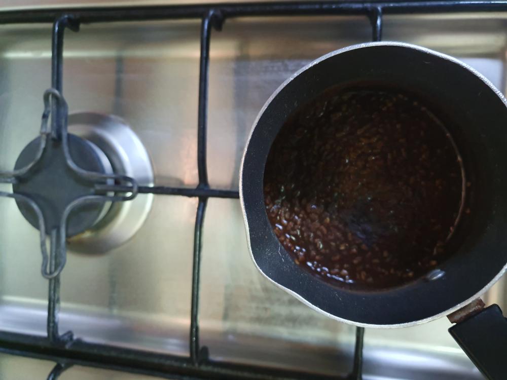 ٣/ ضعيهم على النار حتى يتم الغليان ويتماسك الخليط مع بعضه اتركيه يغلى لمدة ربع ساعة