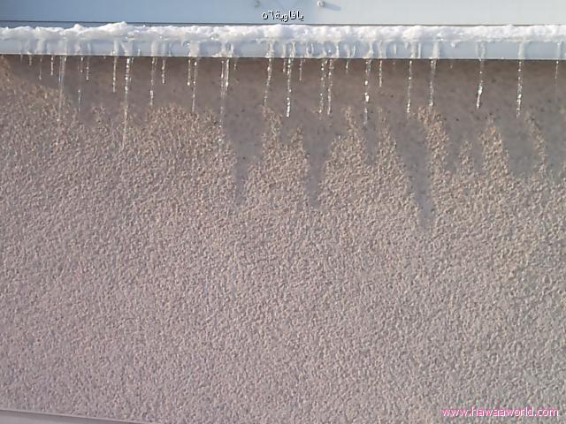 شوفوا سبحان الله كيف قطرات الماء تجمدت وهي ساقطة من حافة الشباك....