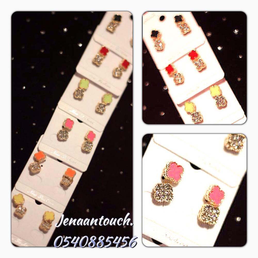 حلق فان كليف ناعم حبتين واحد ملون وواحد كرستال