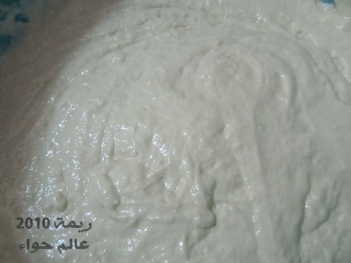 وبعد كذا نضعه في صينية مدهونه مستطيلة الشكل تقريباً حجما كبير شوي 30 × 40 سم