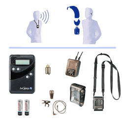الجهاز عباره عن جهاز استقبال صغير يركب علي سماعات الشخص وجهاز ميكرفون يلبسه المدرس او المتحدث حول رقبته