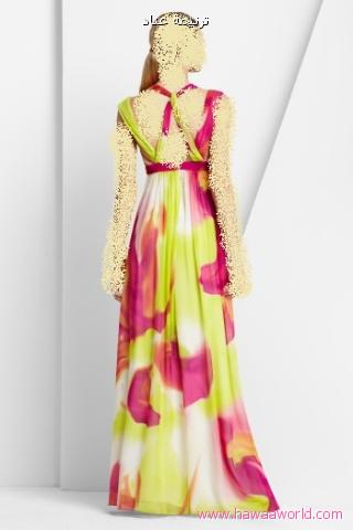 روووووعة .. و أذا حابة تسترينه تقدرين تحطين تحت المناطق المفتوحة شيفون أو دانتيل بلون فوشي أو ليموني يعني من ألوان الفستان ..