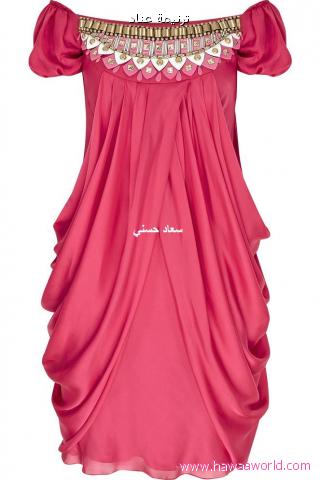 فستان حرير حلو وناعم .. يناسب اللي أجسامهم مسطرة لأنه ( high nick ) .. الاكمام رووووعة